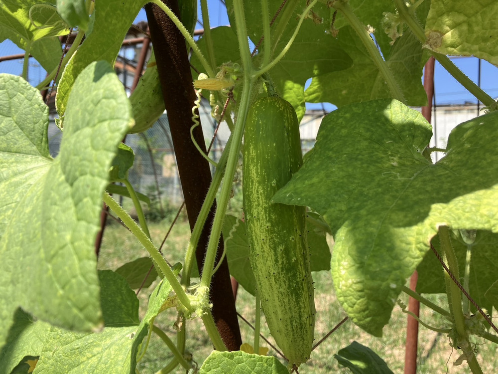 我が家の家庭菜園のキュウリたちは元気いっぱい。