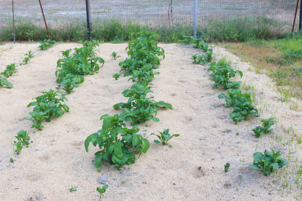 ジャガイモは、芽が出るのにバラつきがありますが、これから暖かくなり成長して行くでしょう。