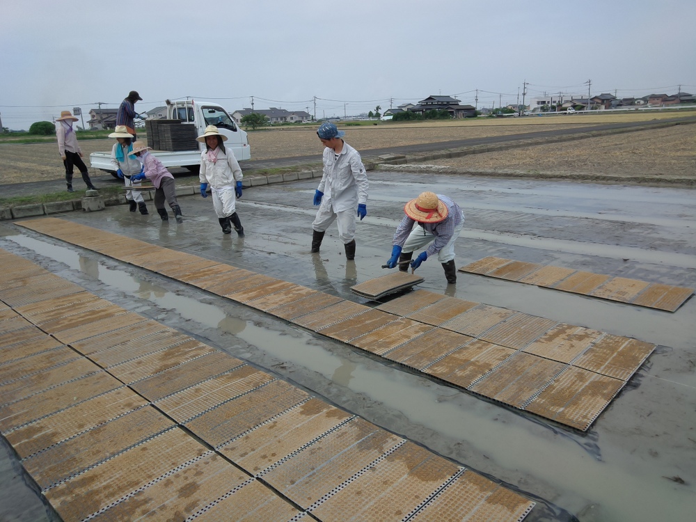 5/31 苗箱を苗床に広げます。(8:30~13:00)