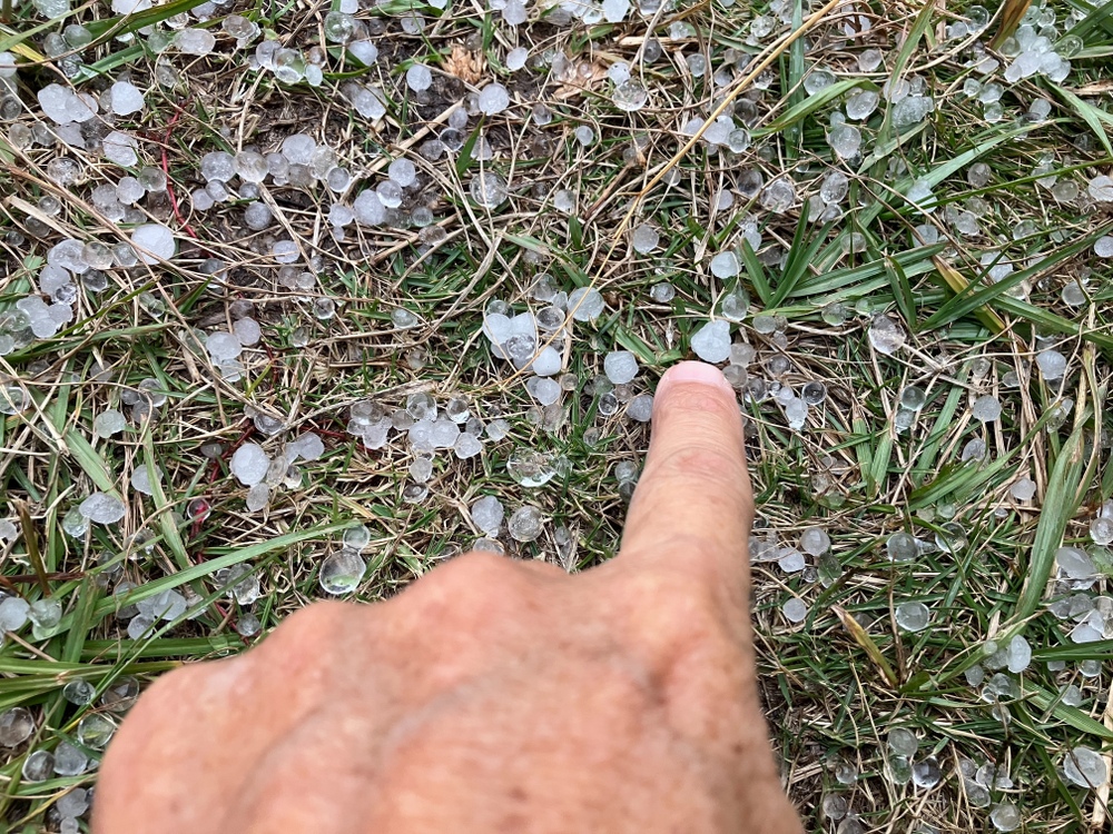 今日のお昼頃、直径1㎝ほどの雹(ひょう)が降りました。