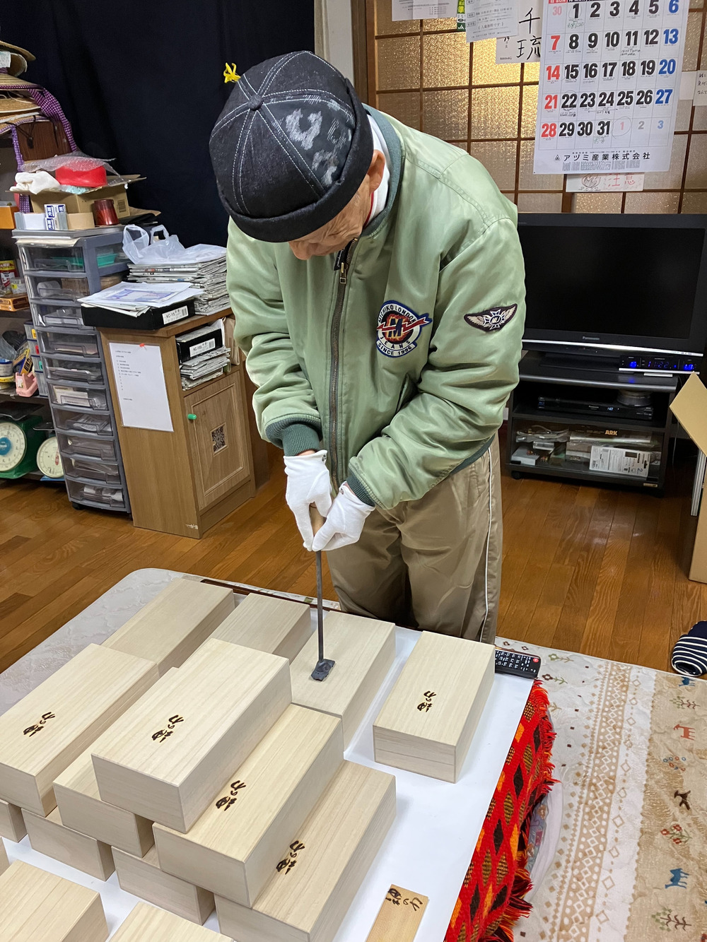 桐箱には一つひとつ、焼き印を入れました。