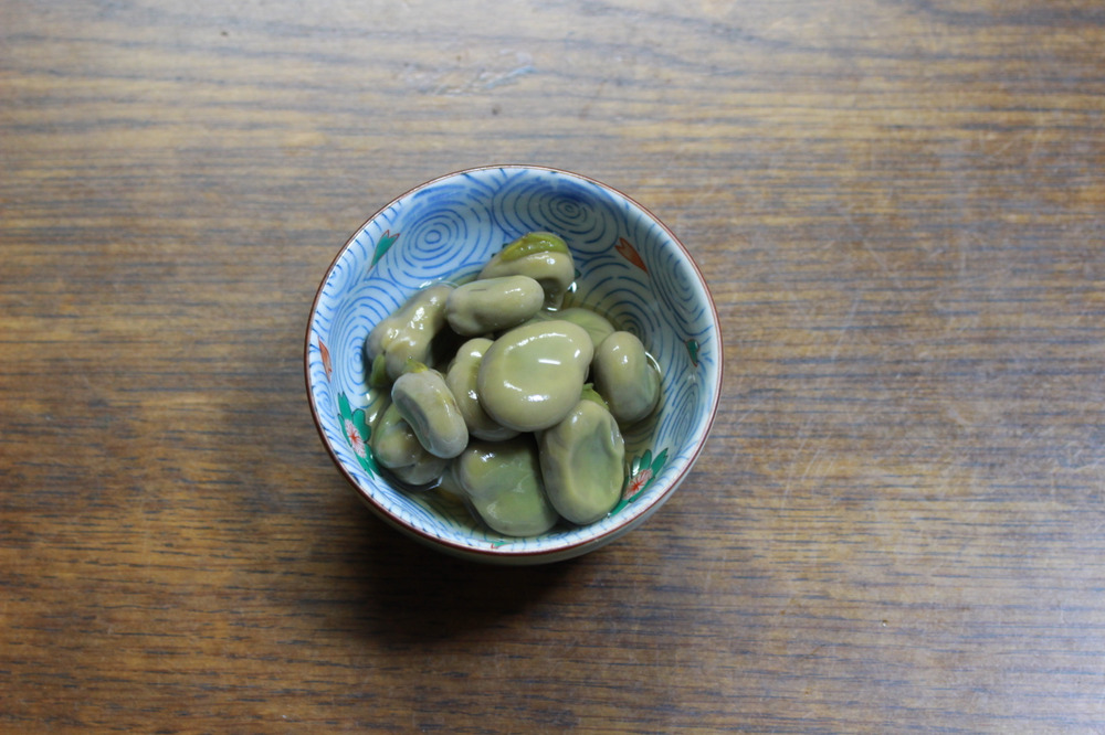 そら豆を収穫して、妻に甘煮を作ってもらいました。