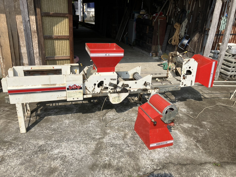 仕上げに苗箱をセットして、いざ試運転です! スイッチを入れると、どこも異常なく、**「カタカタカタ……」**と軽やかな音を立てて苗を送り出してくれました。