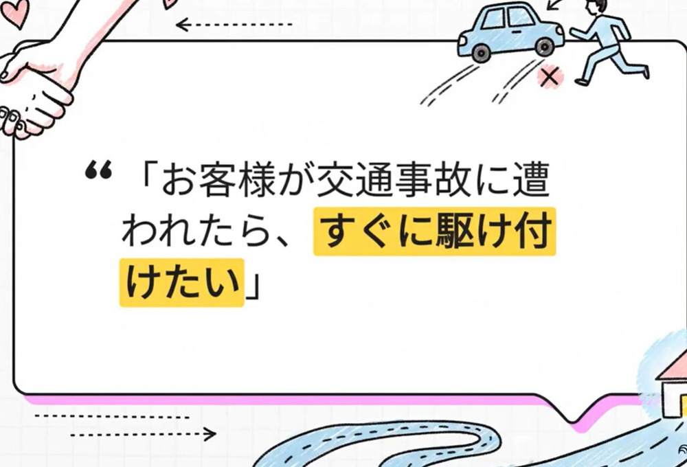 「お客様が交通事故に遭われたら、すぐに駆け付けたい」