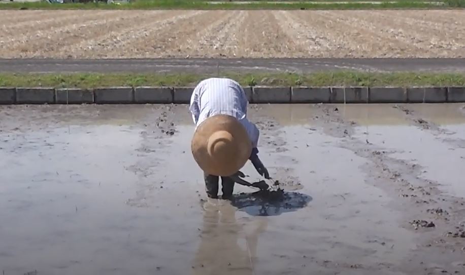自然栽培米(無肥料・無農薬栽培)こしひかり 苗床の溝を掘り