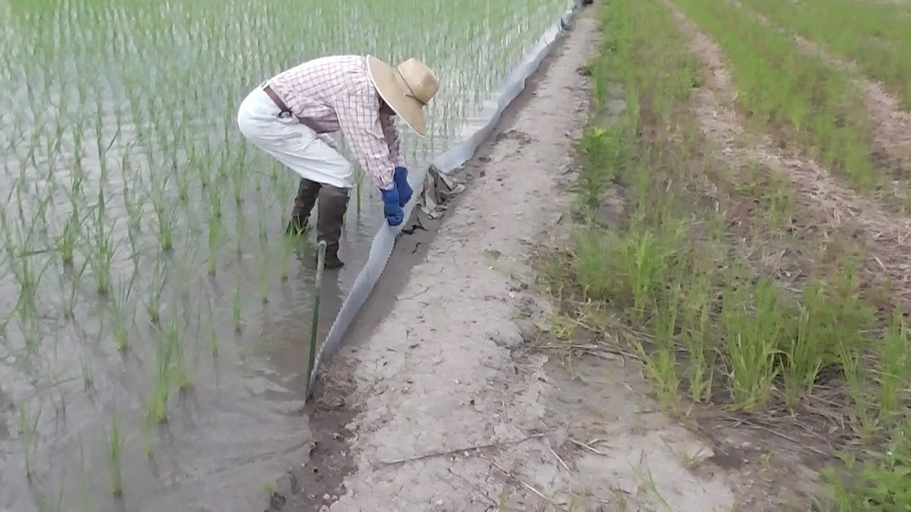 今回の大雨で、アゼの土が流されて、アゼナミを直撃、倒れたままでしたので、修正しております。