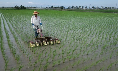 今回使用した除草機は、オータケ製動力ガンズメ5条を田植え後5日目に施工。