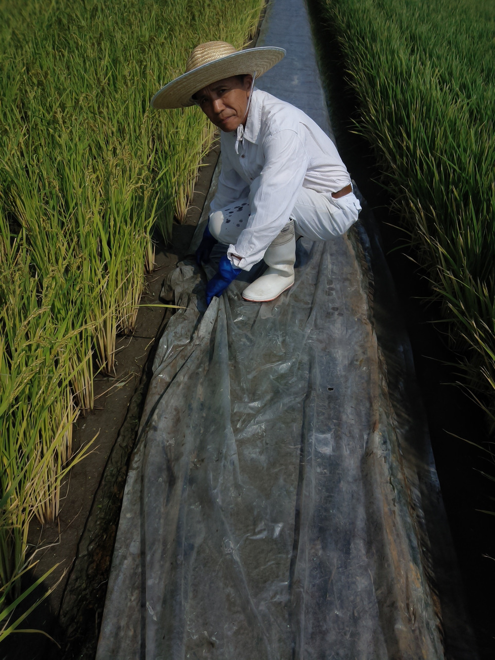 このシートのお陰で、アゼが雨で壊れず草が生えない事に感謝です。