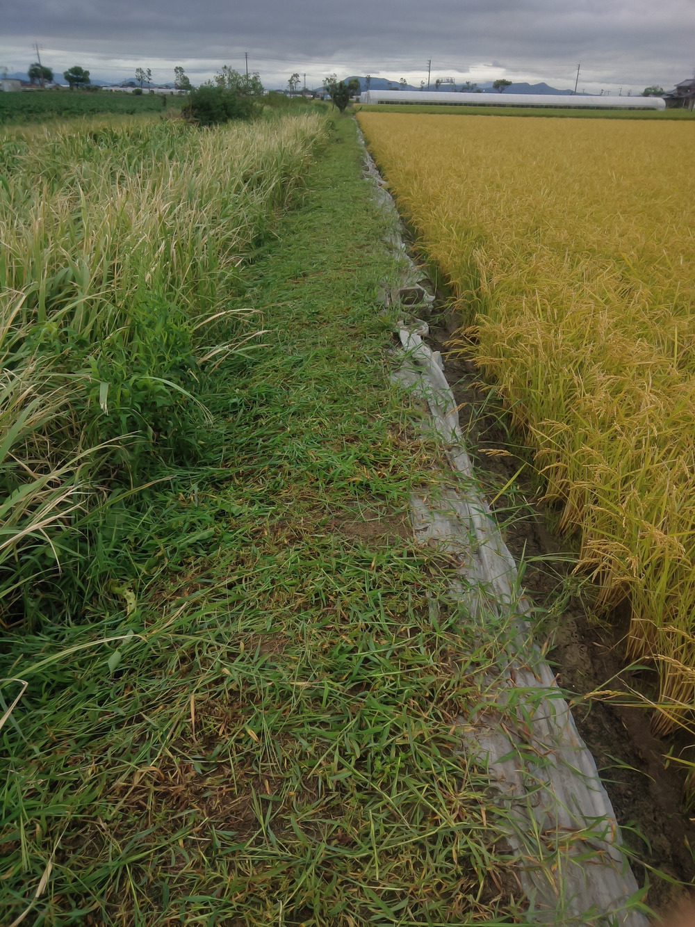 収穫前のアゼ草刈りは慎重に