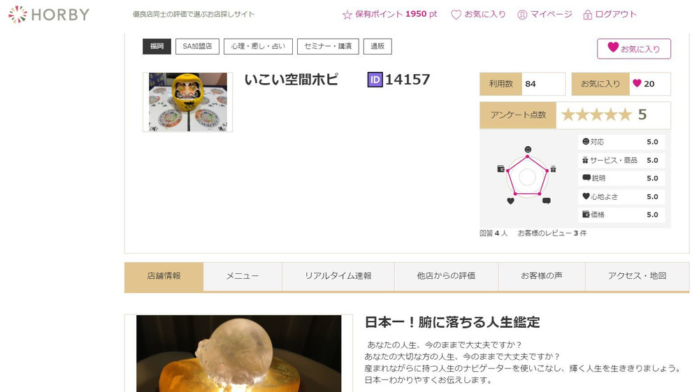 ユーワード・ホービーID:14157いこい空間ホピさんでZOOM鑑定をして頂きました。