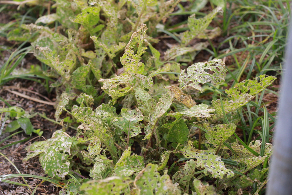 今年の大根は、非常にヤバイ8月に種蒔きした大根が虫の食害で穴だらけ。