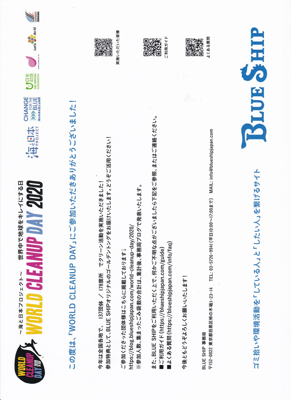 2020年ワールド・クリーンナップデイに、わたし達の日本ボランティアクラブむつごろうも参加。