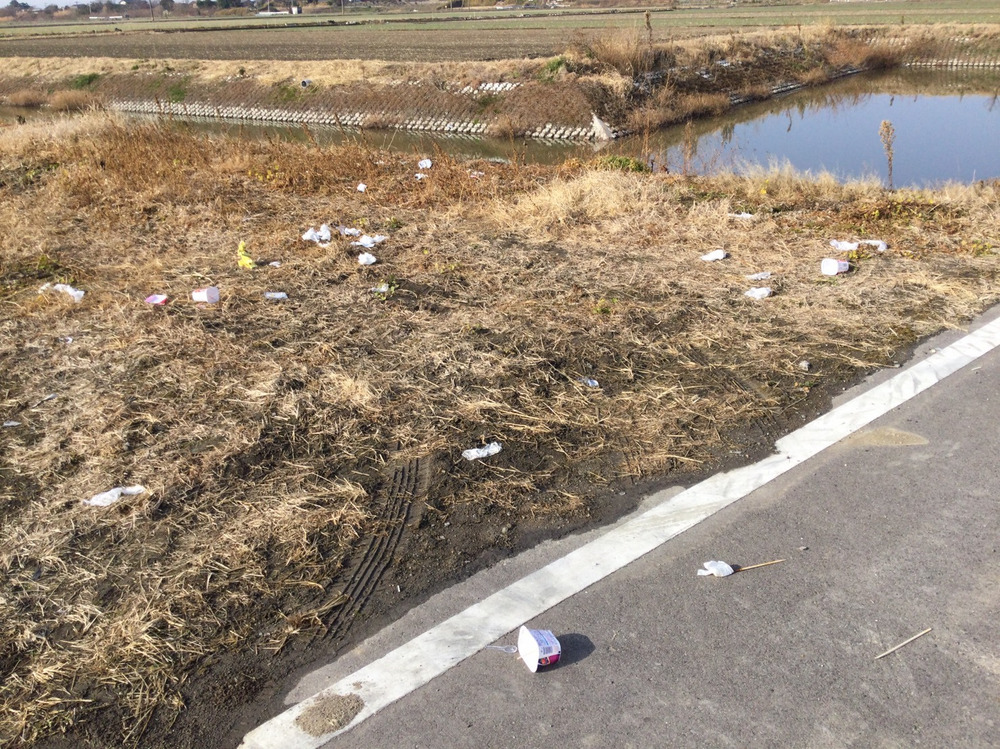12/26 朝田んぼを見回ると、ある空き地にゴミが散乱していました。
