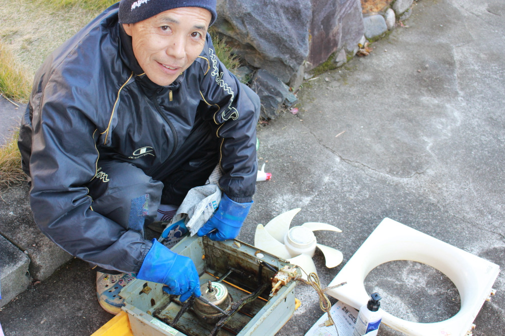 そして、換気扇の掃除は、かなり油がこびり付き、シャッターの開閉にも支障をきたしていました。