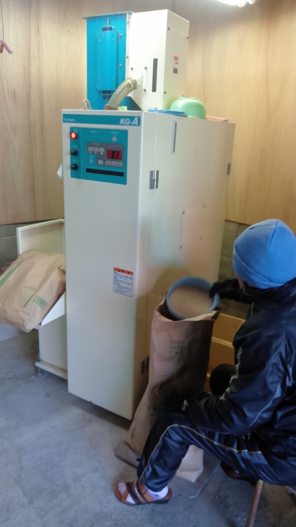 自然栽培米(農薬不使用・肥料不使用・堆肥不使用)の玄米を色彩選別を行っています。