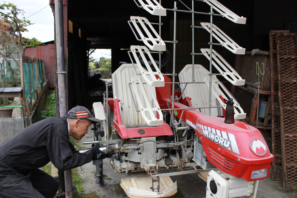 この田植え機は、わたしが預かっていますので、整備と点検も出来る限りするようにしています。