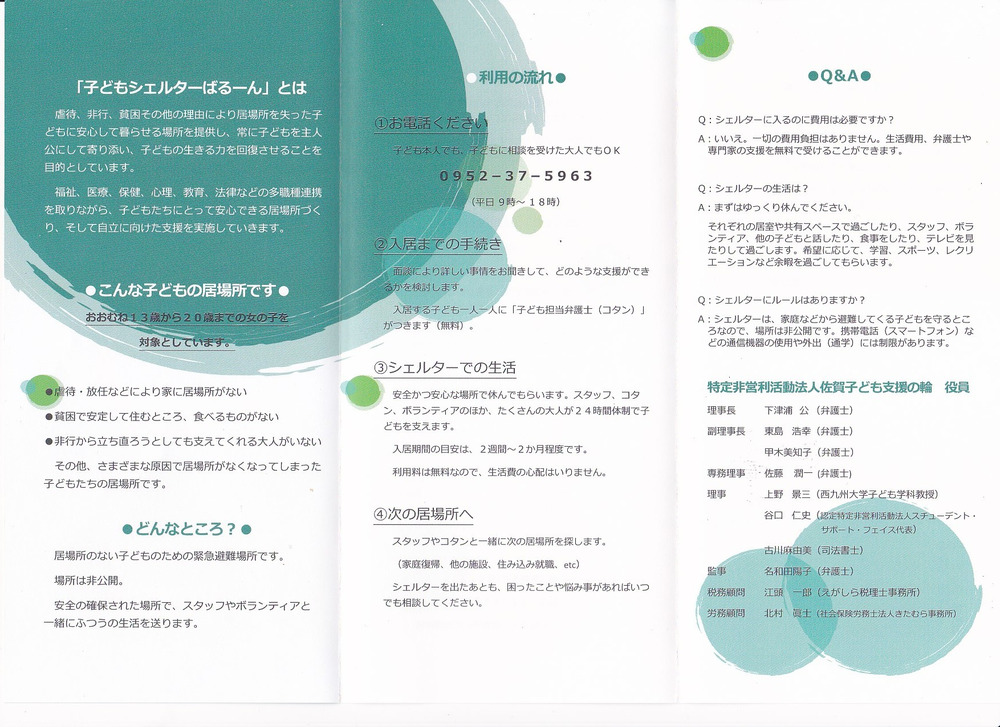 佐賀で4月から子供シェルターが動き出した事をお知らせ致します。