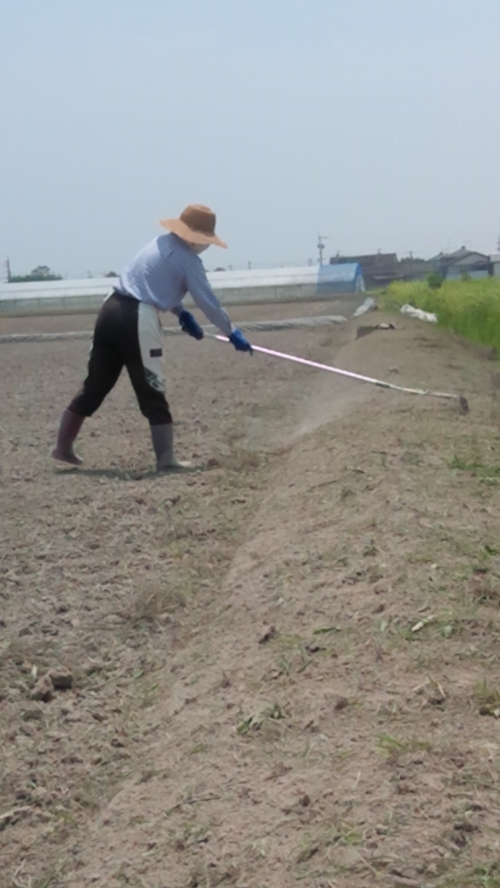 道端も松葉ほうきで草を片付ける事で、みのるポット苗箱の底に草が付か無いようにしています。