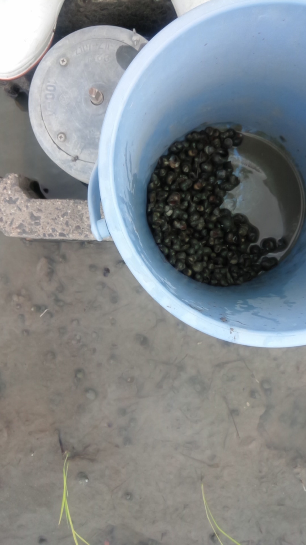 そこで、水の出る付近のジャンボタニシを捕獲して草が生えてきた土地高い所に移動対策しております。