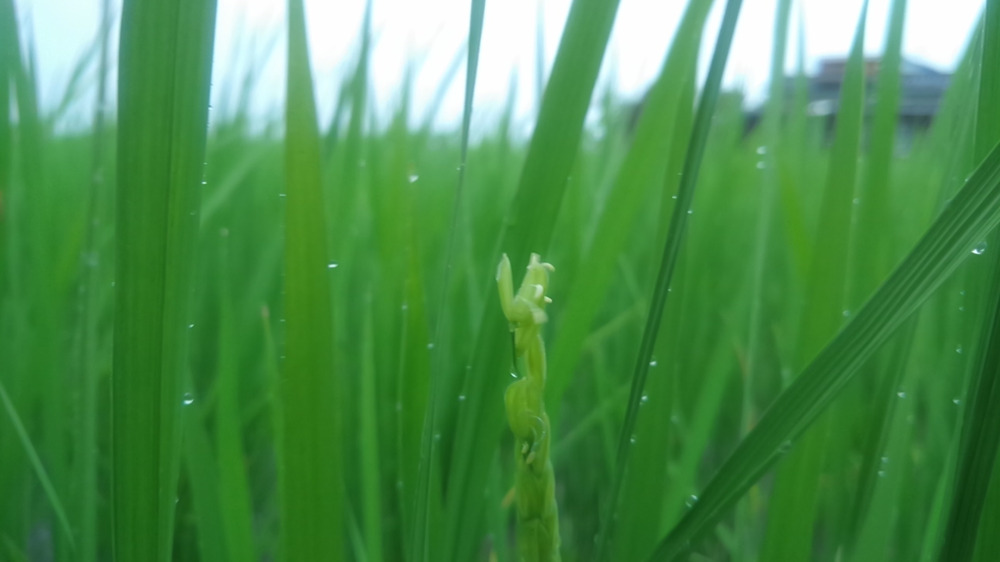 無肥料・無農薬DNA.稲は雨が降り注ぐ中で咲いてる