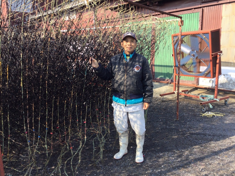 今年は暖かく、海苔の成長が早いようで、昨年から比べて2日早い網干しです。