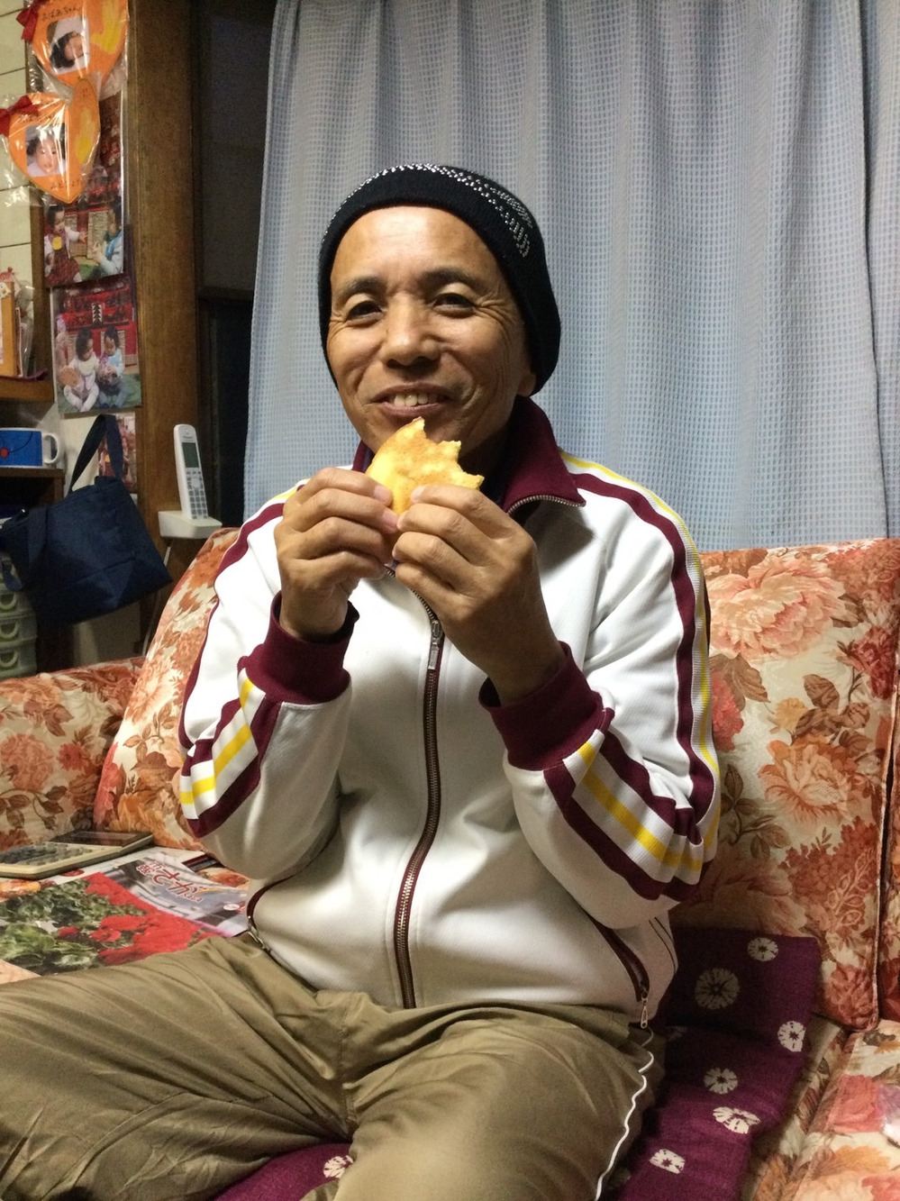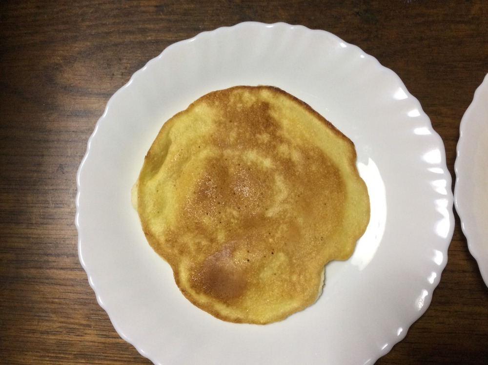 自然栽培米粉のホットケーキを石油ストーブでじっくり焼きました。