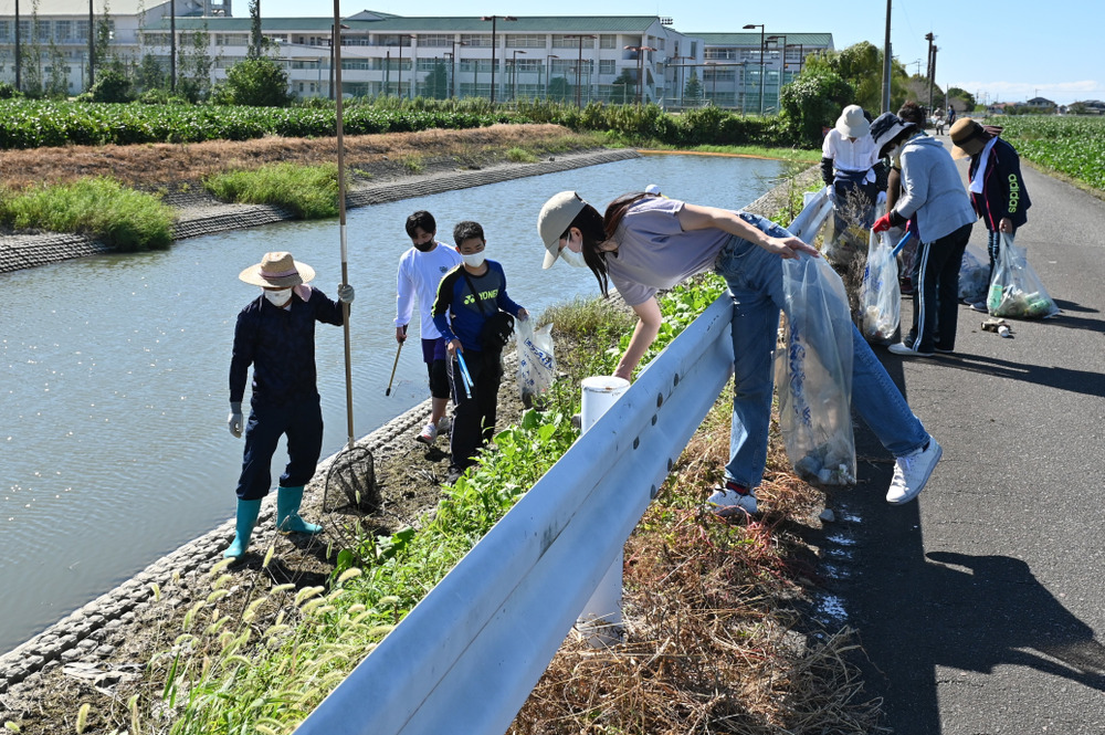 佐賀市のクリークや道路を中心にゴミの散乱を拾い、燃えるごみ、金物、ガラスの3種類に仕分け、佐賀市からのボランティア袋に入れ集積する活動。