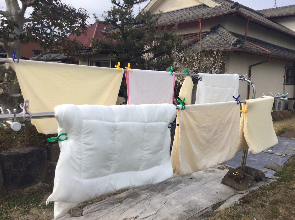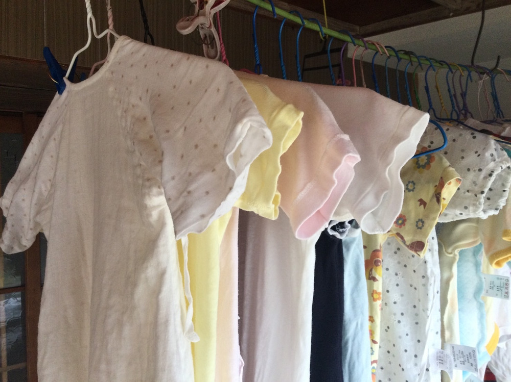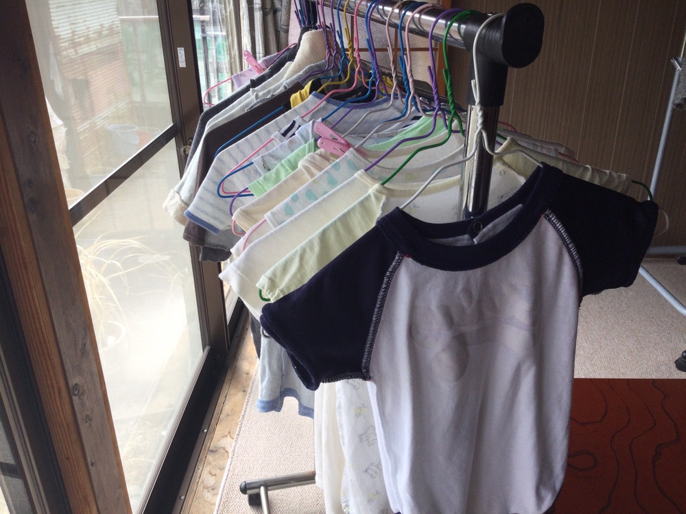 妻がベビー服・布団などを洗濯して準備しています。