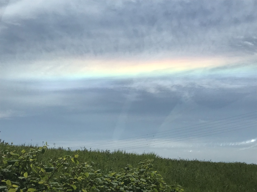 昼間の時間に、綺麗な光を受けた雲と遭遇しました。