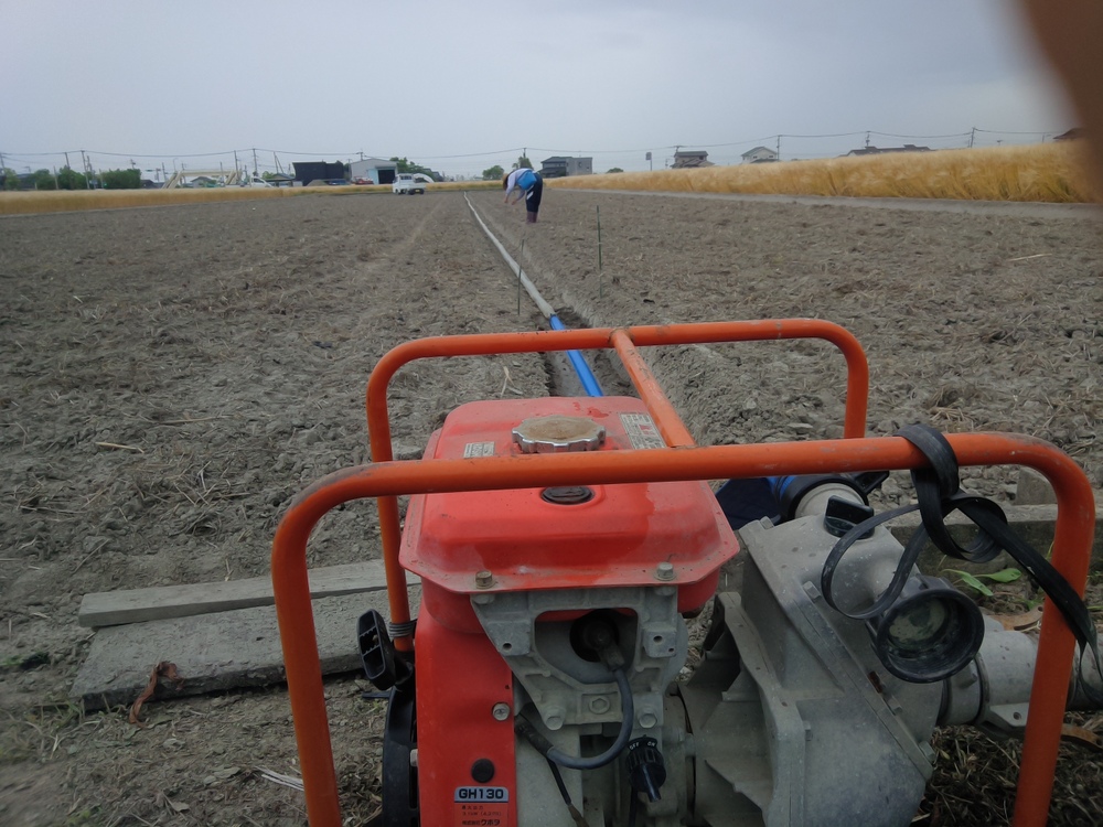 苗床に水揚げポンプ設置