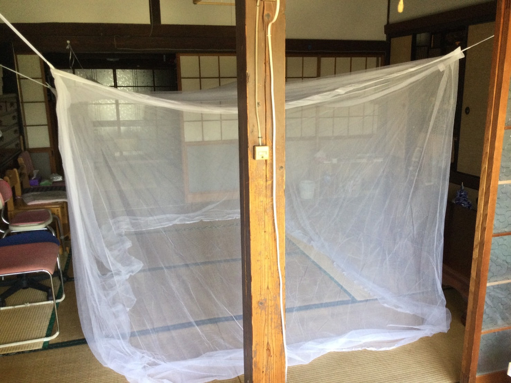 今回は、客人用(田植えのお手伝い)として6畳用蚊帳を購入しました。