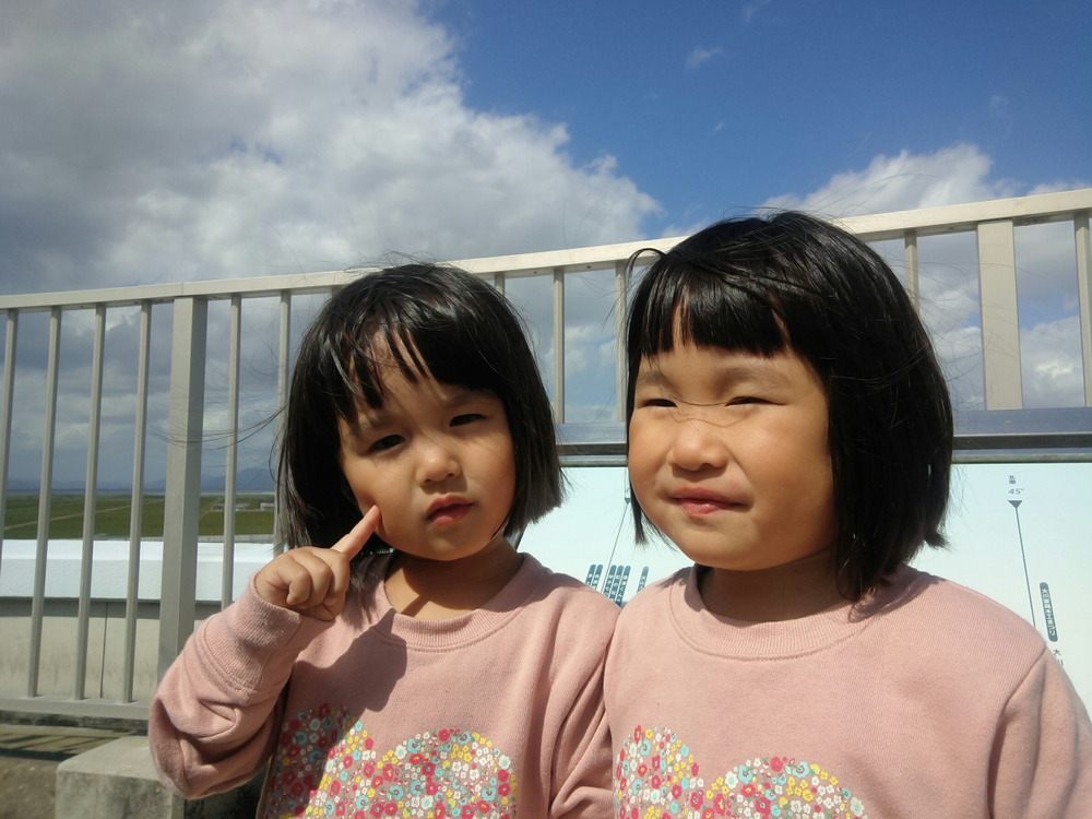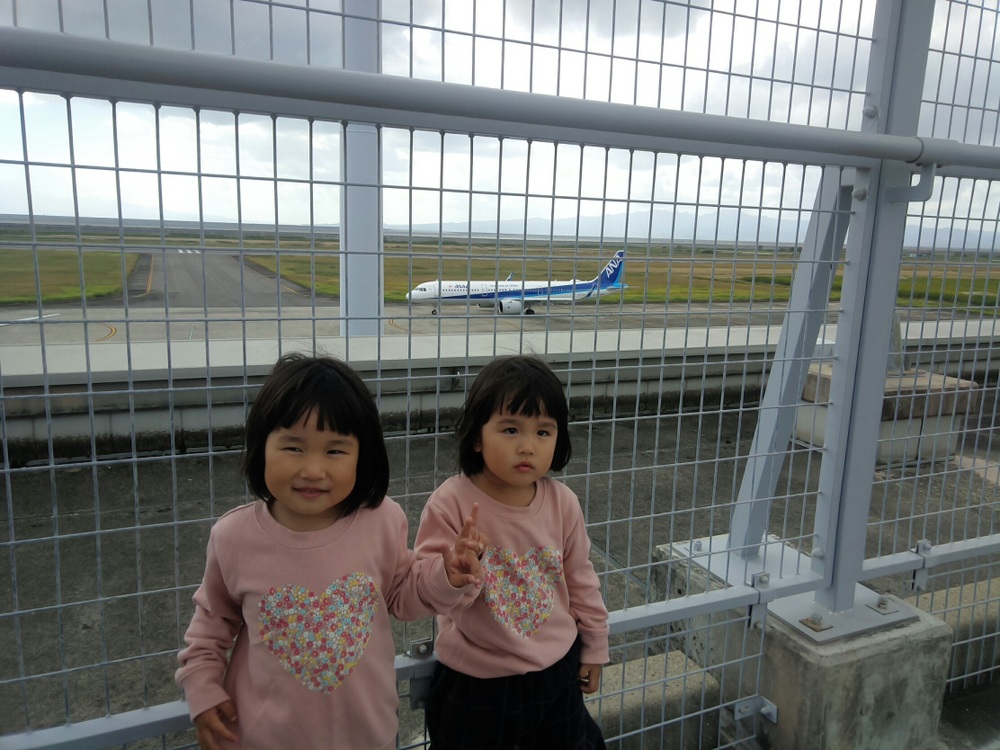 2卵生双子と飛行機を見に、3階の展望と屋上からも見学して大喜びです。