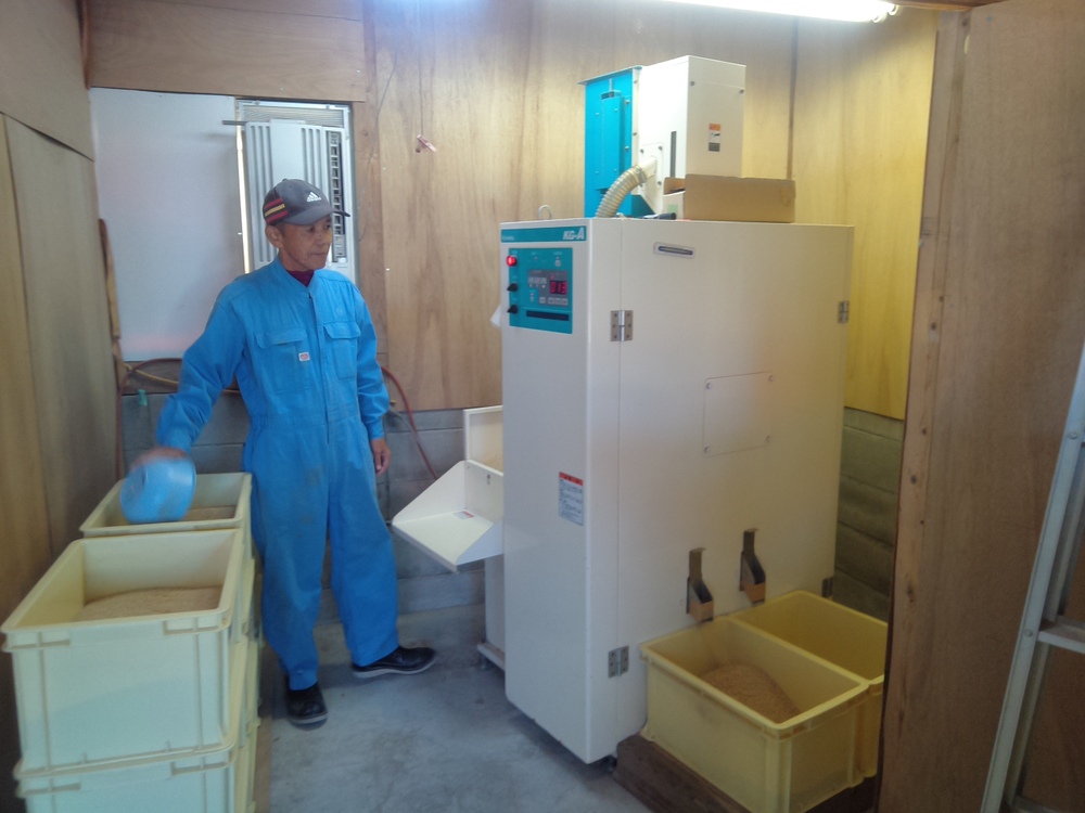昨年から、もみすり・小粒米選別・米色選別・大粒米選別・30㎏袋詰め・保冷庫に貯蔵を一連の仕事として数回に分け行っております。