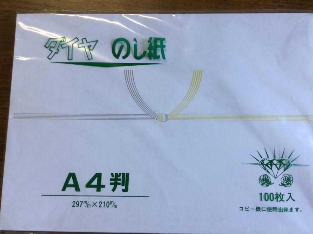 お客様からの依頼で、熨斗に「偲び草」をと言う事で、インターネットで検索し、黄色の熨斗を探す事になりました。