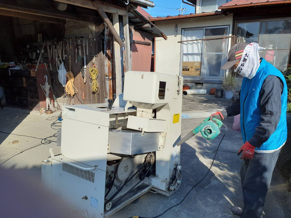 自然米の収穫から約1ヶ月、すべての仕上げ(玄米)が終わり、機械類の最後にもみすり機を掃除しております。