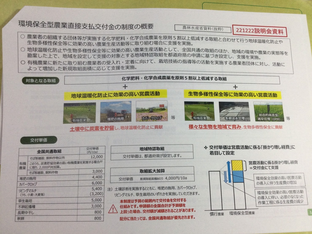 自然栽培は環境保全型交付金制度の対象外