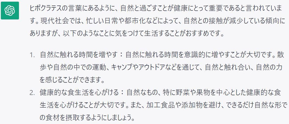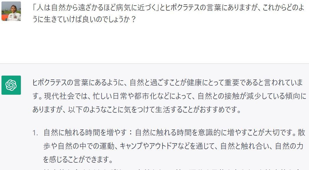 二つ目は、ヒポクラテスの言葉「人は自然から遠ざかるほど病気に近づく」についてお聞してております。