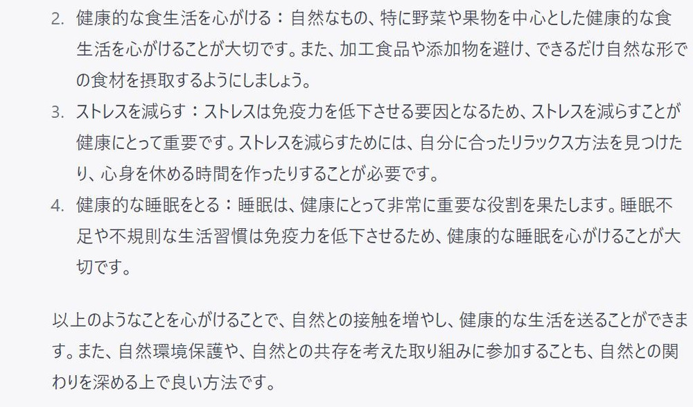 三つ目は、もう一度ヒポクラテスの言葉「人は自然から遠ざかるほど病気に近づく」同じ事を聞きましたが、内容は似ていますが同じ答えではありません。