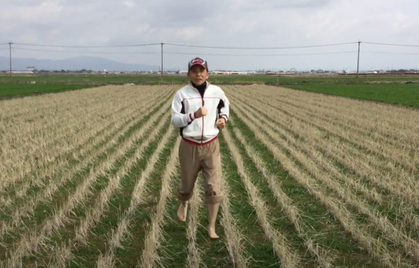 はだしのヒロキは、無肥料・無農薬栽培の田んぼで、歩く事で身体に付いてる静電気を地球に抜いて頂きます。