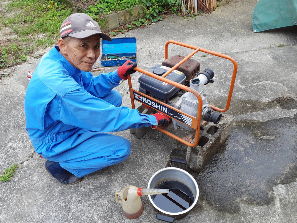 水揚げするエンジンポンプのスターターロープの交換は簡単