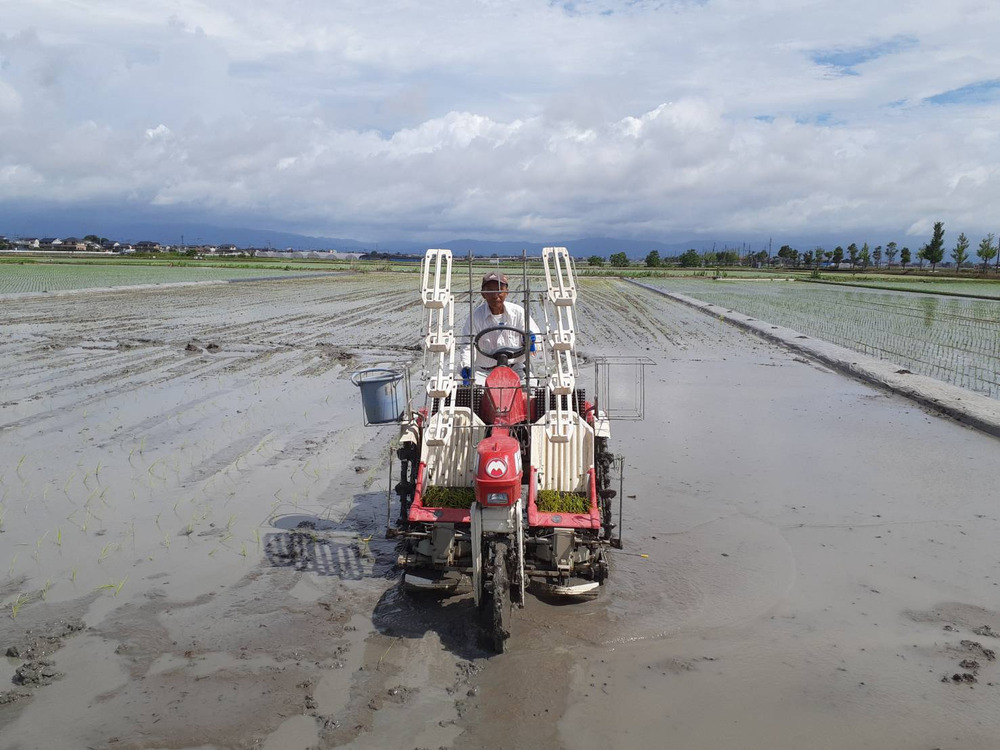 田植え機のギヤチェンジが壊れたままで、後進が出来ずに前進のみで植え付け。