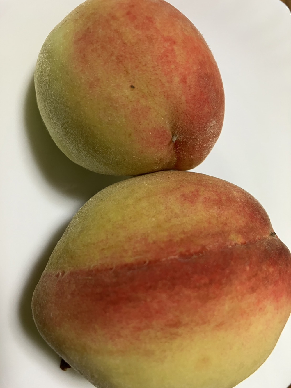 我が家の畑に植えた桃の果実が収穫時期を迎えております。