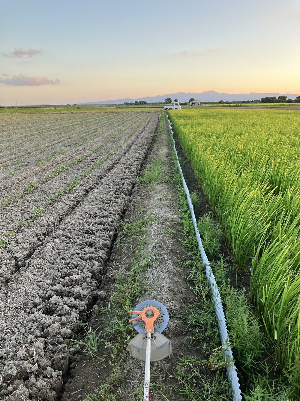 アゼナミの側は、後で鎌を使い人力で草取りします。