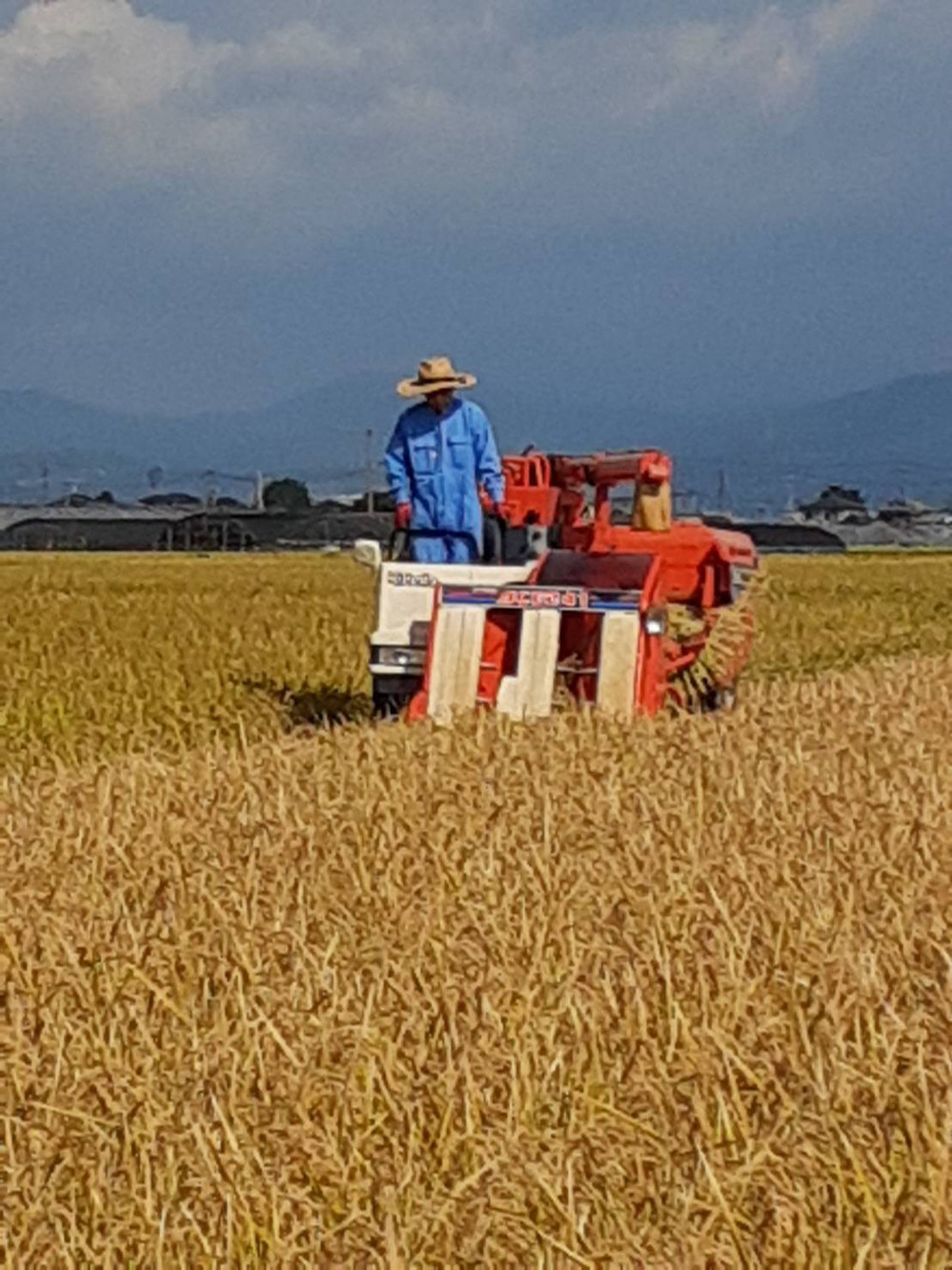 今年の夏は暑く、収穫時期には温度が下がり絶好な稲刈りです。