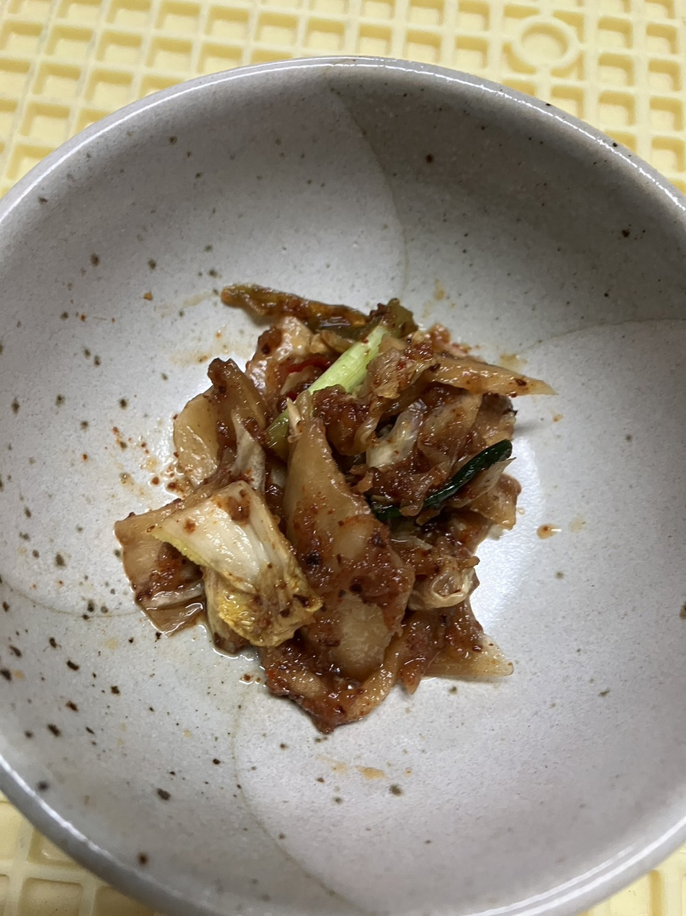 白菜を4つに切り、お日様に1日当て、ニラやショウガそしてアミの塩辛などなどを入れたそうです。