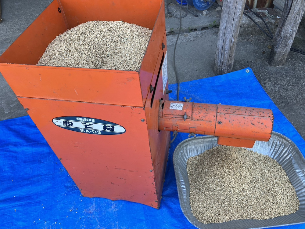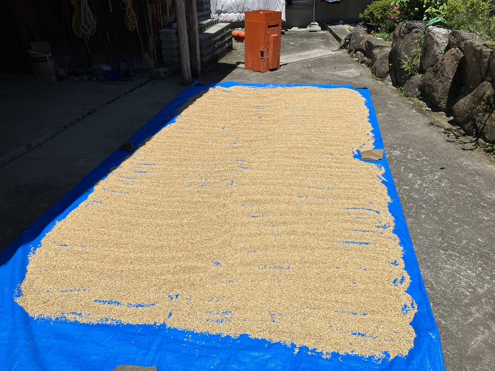 しかし、ただ種籾を脱亡機に掛けるだけでは、うまく脱亡できません。その前に、しっかりと乾燥させてから脱亡機に掛けると、茎が折れやすくなります。そこで、この時期の気温が上がった状態で乾燥させ、その後に脱亡機に掛けることで、イイ感じに脱亡ができるようになりました。