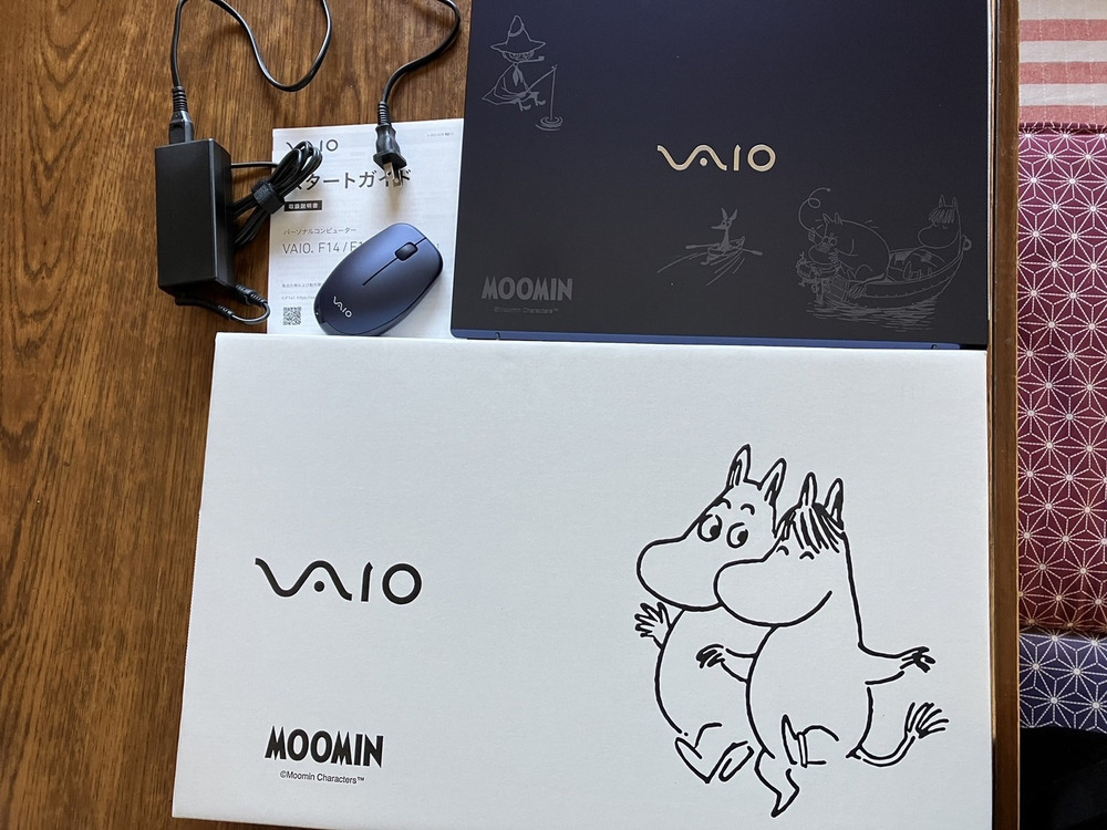 新しいVAIOのムーミンモデルのパソコンが届きました!心待ちにしていた瞬間でした。以前のNECパソコンが立ち上がるのに時間が掛かるようになってしまって、不安な日々が続いていました。でも、新しいパソコンが手元に届いて、それが日本製であるという安心感は嬉しいですね。