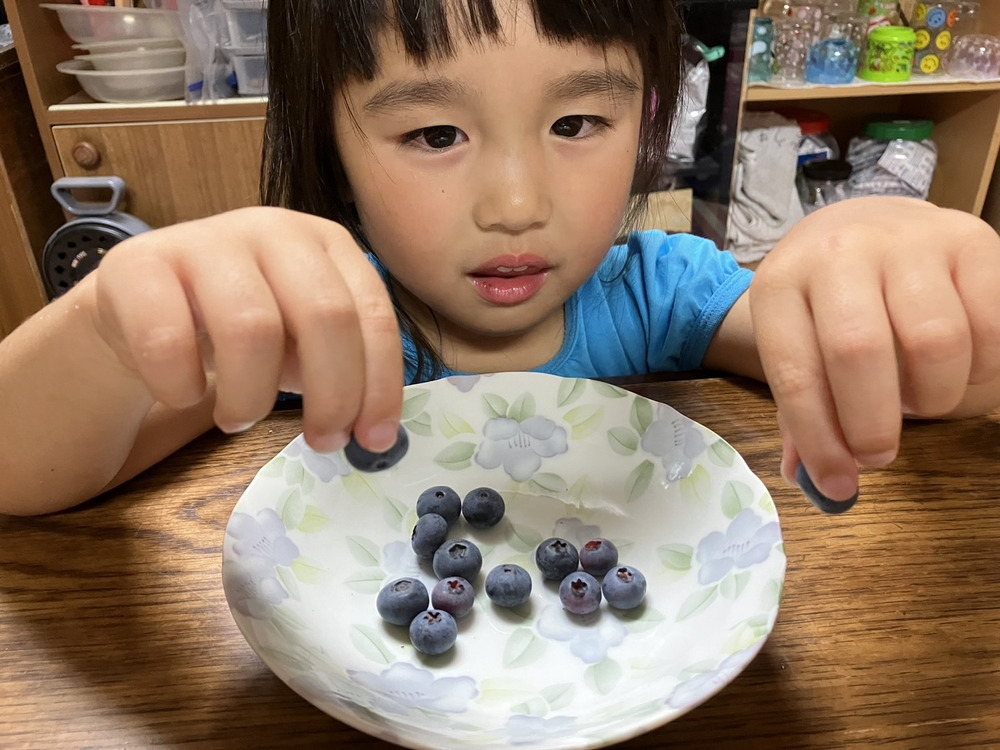 我が家には双子の孫娘がいます。長女はブルーベリーが大好物で、どんな食べ物にも積極的に挑戦します。次女は一粒だけ食べて満足するタイプですが、それでもその一粒を楽しんでいる様子を見ると嬉しくなります。