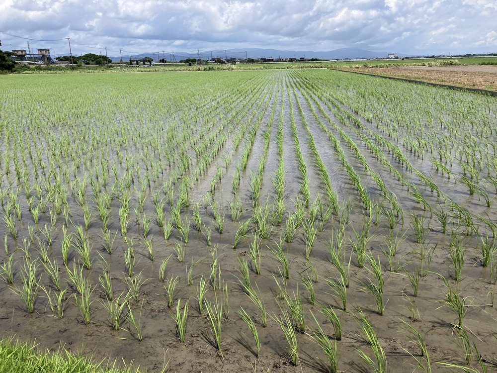 田植え直後は1~3本の苗だったのが、今では5~7本くらいになり、力強く成長しています。今年は田んぼの土がより水平になり、ジャンボタニシの食害もほとんど見られません。本当にありがたいことです。