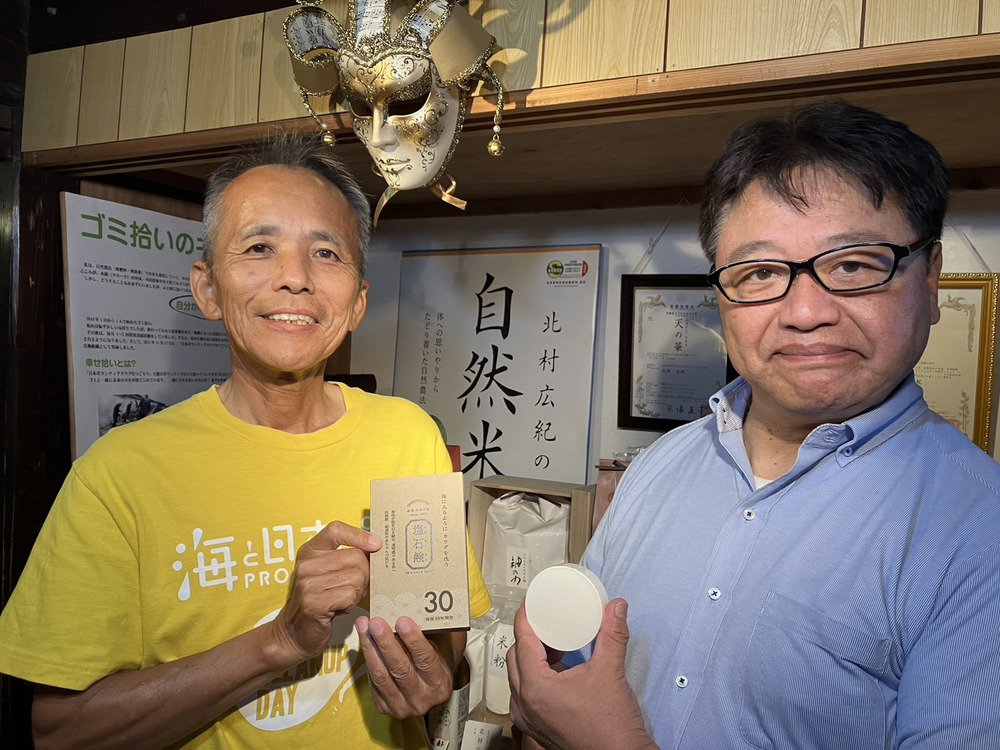 この米ぬかが、どのように新しい製品に生かされるのか、とても楽しみです。ロイスさんが手がける商品は、アトピーに悩む開発者が20年の歳月をかけて完成させた塩せっけん。色素や香料、添加物を一切使わない、自然の恵みを大切にしたせっけんです。